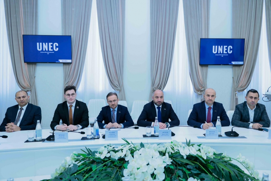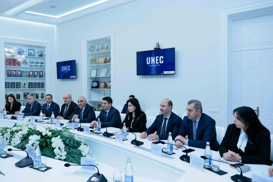 UNEC-in rektoru professor Ədalət Muradov və müvafiq struktur rəhbərlərinin iştirakı ilə keçirilən görüşdə universitet-sənaye iş birliyinin müasir formalarından, təhsildə iş dünyasının rolunun artırılmasından bəhs olunub.