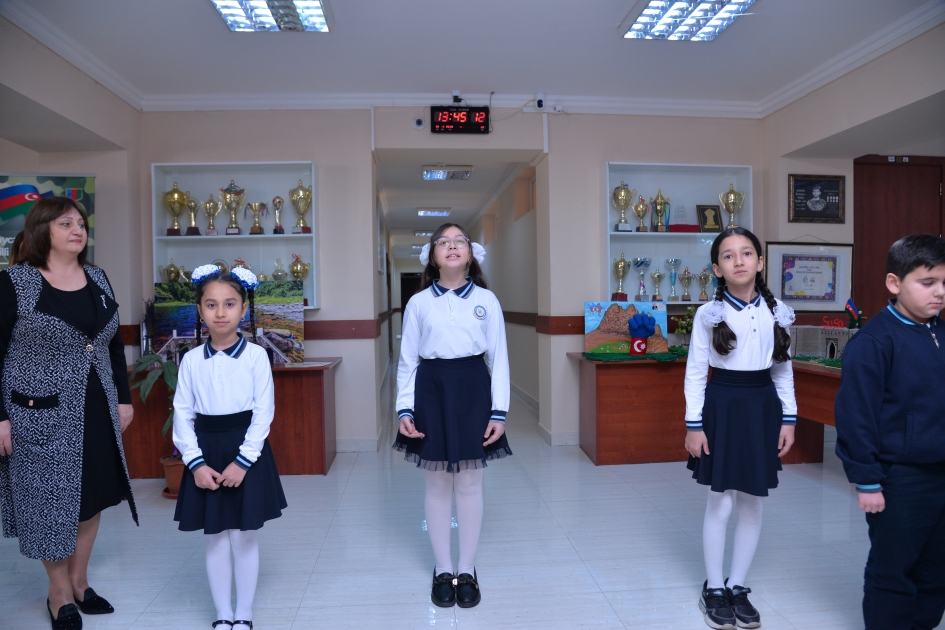 Əvvəlcə qonaqlar məktəbdə fəaliyyət göstərən dərnək üzvlərinin əl işlərindən ibarət sərgiyə baxış keçirib, məktəbin həyətində Milli Qəhrəman Yuri Kovalyov və şəhidlərin abidəsi önünə tər çiçəklər düzüblər. Tədbir Azərbaycan və Türkiyənin azadlığı uğrunda canlarından keçmiş şəhidlərin xatirəsinin bir dəqiqəlik sükutla yad edilməsi, Azərbaycan Respublikasının və Türkiyə Cümhuriyyətinin Dövlət himnlərinin səsləndirilməsi ilə başlayıb.