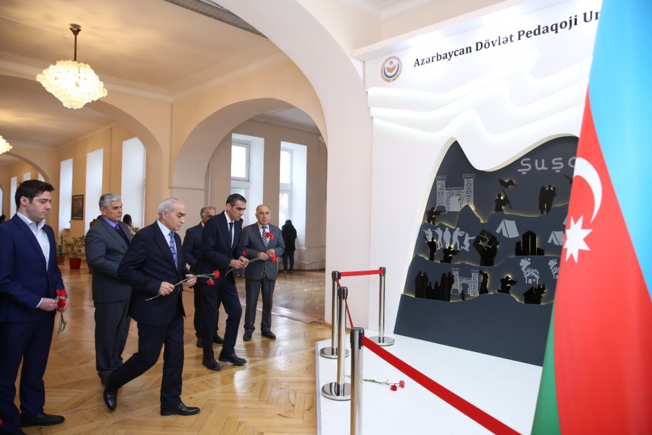 Əvvəlcə Ümummilli Lider Heydər Əliyevin ali təhsil müəssisəsindəki abidəsinin və “Zəfər guşəsi”nin önünə gül dəstələri qoyulub, Ulu Öndərin və şəhidlərin xatirəsi ehtiramla yad edilib.