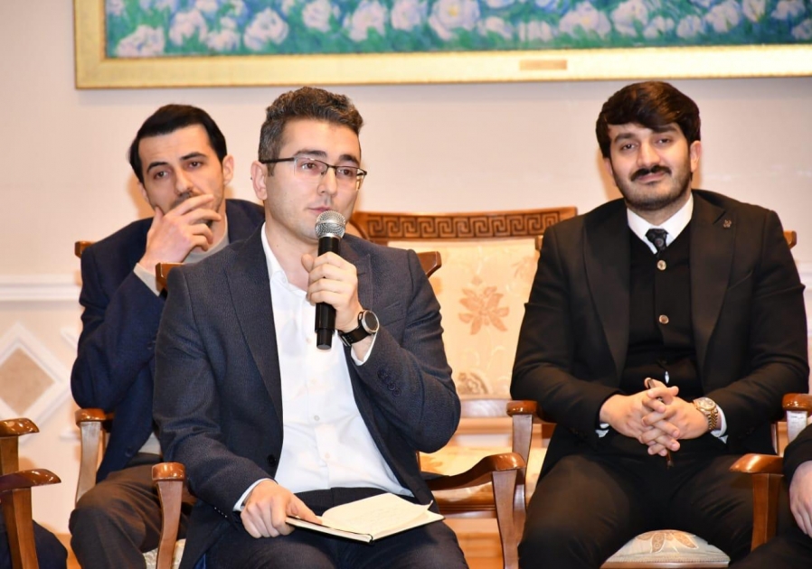 Görüşdə çıxış edən mədəniyyət naziri ölkəmizdə gənclərə göstərilən diqqət və qayğıdan danışıb. Qeyd edib ki, gənclərimizin müxtəlif ixtisaslar üzrə xaricdə təhsil alması istiqamətində ardıcıl addımlar atılır: “Sizlərin bir çoxu 2007–2015-ci illərdə Azərbaycan gənclərinin xarici ölkələrdə təhsili üzrə Dövlət Proqramı” çərçivəsində dünyanın nüfuzlu universitetlərində mədəniyyətin müxtəlif sahələri üzrə təhsil almısınız. Ölkə rəhbərliyi tərəfindən mədəniyyət sahəsinin inkişafı ilə bağlı qarşımızda qoyulan vəzifələrin və tapşırıqların həyata keçirilməsində beynəlxalq təcrübəyə əsaslanan biliklərə, yanaşmalara ehtiyac var”.