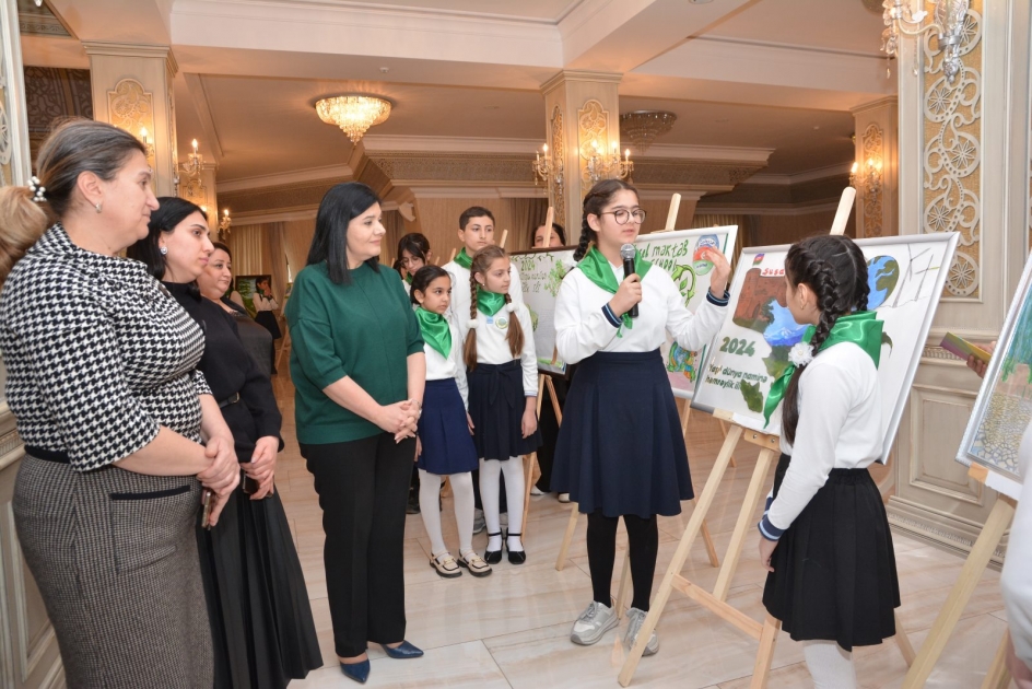 Sonra ətraf mühitin qorunmasına dair şagirdlərin çəkdikləri rəsm və əl işlərinə baxış keçirilib.