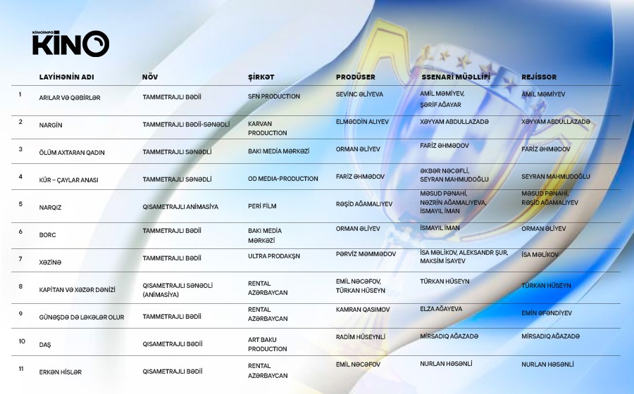 Azərbaycan Respublikasının Kino Agentliyi (ARKA) kino sahəsinin inkişafının dövlət tərəfindən dəstəklənməsi, kinematoqrafiya fəaliyyətinin təşviq edilməsi, yerli kinematoqrafçıların təcrübəsinin artırılması, milli-mənəvi və ümumbəşəri dəyərləri təbliğ edən filmlərin istehsalına nail olunması, eləcə də bu sahədə özəl sektorun dəstəklənməsi məqsədilə film layihələri müsabiqəsi elan edib. Bununla bağlı Mədəniyyət Nazirliyi tərəfindən “Kinematoqrafiya, rəqəmsal və digər audiovizual əsərlərin məzmununun qiymətləndirilməsi üzrə Ekspert Şurası” yaradıldı. Kinematoqrafiya sahəsində fəaliyyət göstərən özəl qurumlar dövlət sifarişi, kommersiya, müəllif (sənət), debüt və tələbə filmləri kateqoriyaları üzrə layihələrini 18 iyul – 29 noyabr 2023-cü il tarixlərində müsabiqəyə təqdim etdilər. təqdim olunmuş layihələrdən 11-i Ekspert Surası tərəfindən qalib elan olunub.. Layihələri təqdim etmiş müstəqil prodüser mərkəzləri tərəfindən istehsala başlanılması məqsədilə ARKA tərəfindən müvafiq tədbirlər görülür.