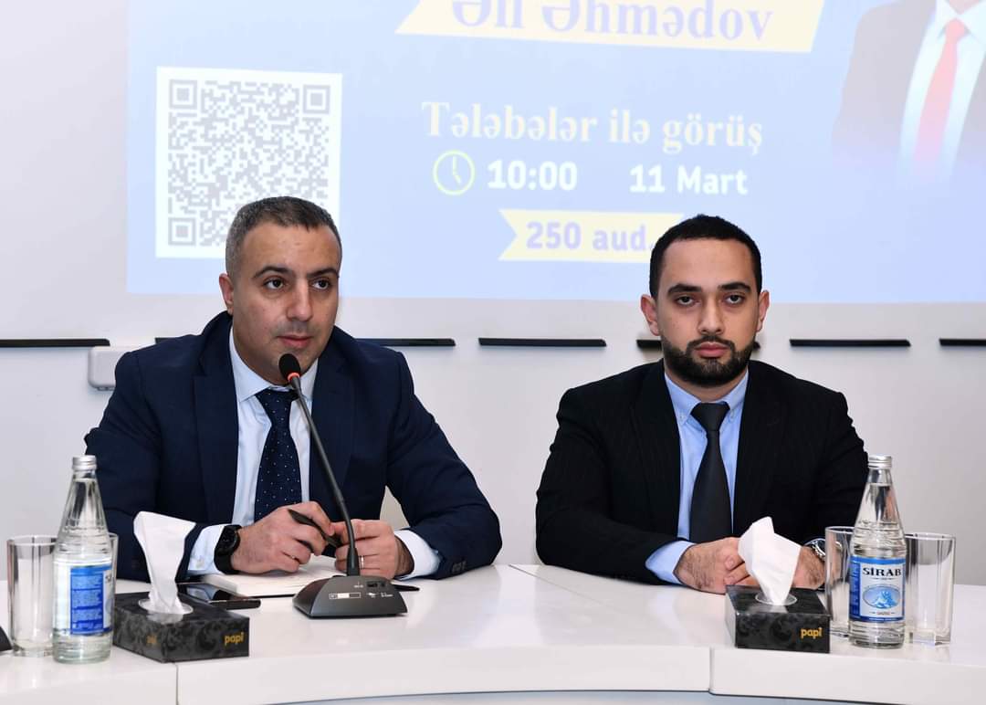 Universitetdən "Tehsil.biz"ə bildirilib ki, görüşdə uğurlu karyera qurmağın yollarından danışan Ə.Əhmədov karyerada inkişafla bağlı gənclərə tövsiyələr verib, öz təcrübəsini onlarla bölüşüb.