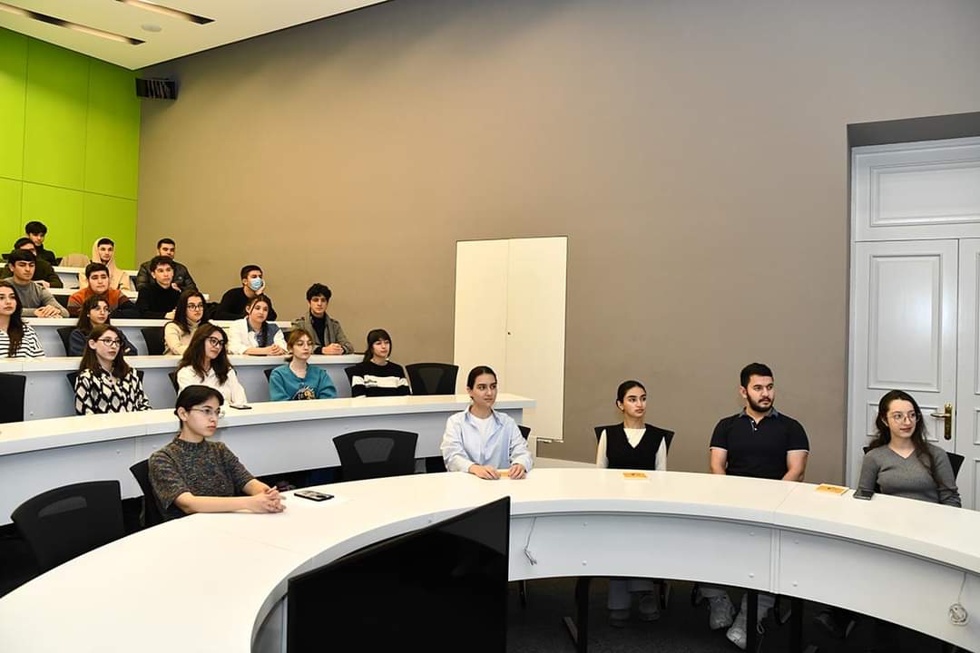 İnteraktiv formatda keçirilən görüşdə müzakirələr aparılıb, tələbələrin sualları cavablandırılıb.