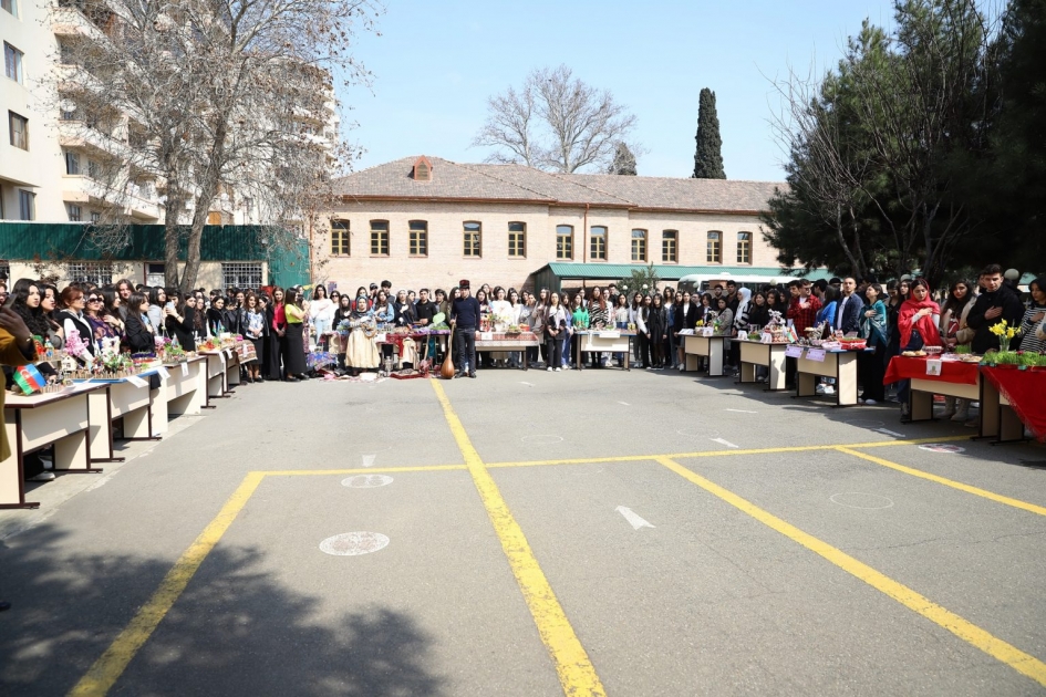 Tələbələrin bayrama aid əl işləri, fərqli tərtibatlarda cücərdilmiş səmənilər xonçalara xüsusi gözəllik qatıb. Şuşa və Xarıbülbül simvolu, qədimi qabların nümayişi festivalı daha da maraqlı edib.