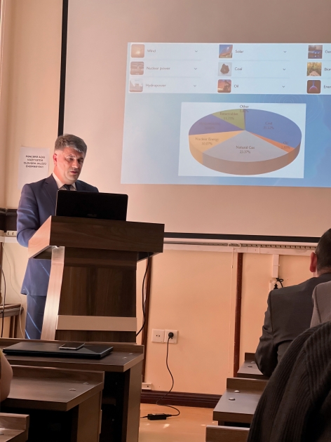 Tədbirdə Neft kimyası və kimya texnologiyası kafedrasının müdiri İbrahim Məmmədov “Azərbaycanın təbii ehtiyatları gələcəyin yaşıl enerjisi kimi” mövzusunda çıxış edib. Çıxışda hazırda dünyada istifadə edilən enerji mənbələri, planetin üzləşdiyi ekoloji problemlər, bu problemlərin həllində Azərbaycanın atdığı addımlar, yaşıl enerjinin payının artırılması istiqamətində dövlətin apardığı siyasət, Neft kimyası və kimya texnologiyası kafedrasında görülən işlər haqqında məlumat verilib.