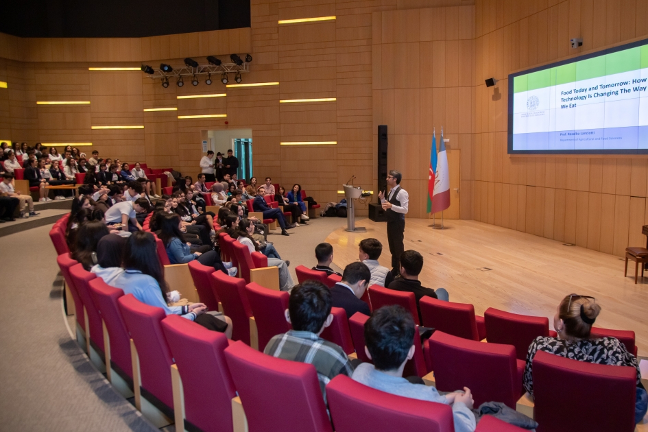 Xatırladaq ki, martın 3-də, həmçinin Kənd təsərrüfatı və qida elmləri fakültəsi tərəfindən şagirdlər arasında qida texnologiyaları barədə məlumatlılığın artırılması üçün master-klas keçirilib. Bolonya Universitetinin Kənd təsərrüfatı elmləri və texnologiyaları fakültəsinin direktoru Rosalba Lançiottinin çıxış etdiyi master-klasda qida sənayesinin gələcəyini formalaşdırmaq məqsədi daşıyan davamlı qidalanma, qida təhlükəsizliyi sahəsində istifadə edilən texnologiyalara dair məlumat verilib.