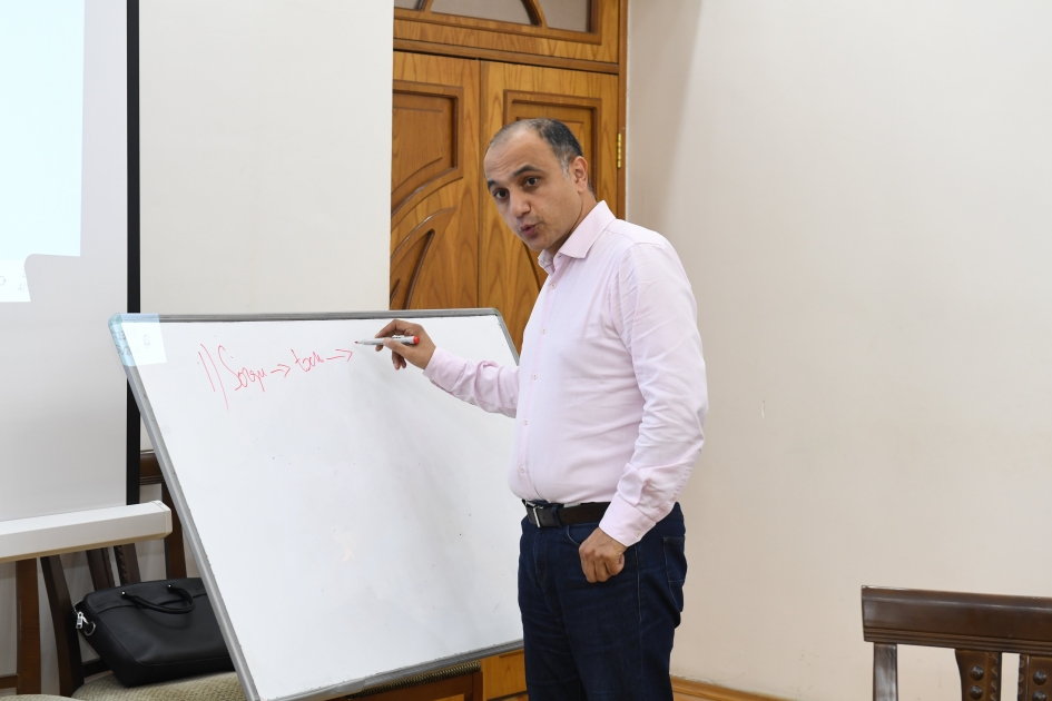 Universitetin dosenti Anar Vəliyevin moderatorluğu ilə keçirilən təlimdə məlumatın növləri, keyfiyyət göstəriciləri, sorğunun keçirilməsində istifadə edilən əsas alətlər ilə bağlı praktik və nəzəri məlumatlar verilib.
