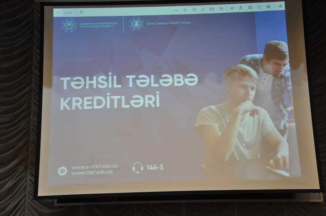 Sonra, Təhsil Tələbə Krediti Fondunun (TTKF) nümayəndəsi Məhəmmədəli Abdin təhsil tələbə kreditinin növləri və onlardan istifadə hüququ, kreditin verilməsi və qaytarılması prosedurlarına dair tələblər, təhsil müddətində qazanılan yüksək göstəricilərə uyğun əldə edilən güzəştlərlə bağlı məlumatların yer aldığı təqdimatla çıxış edib.