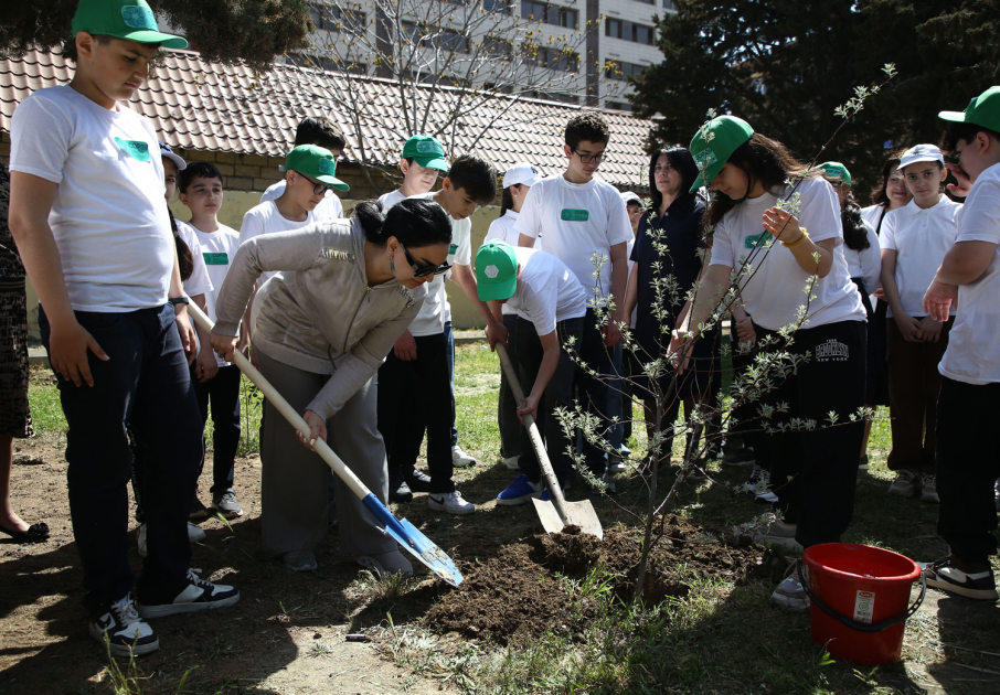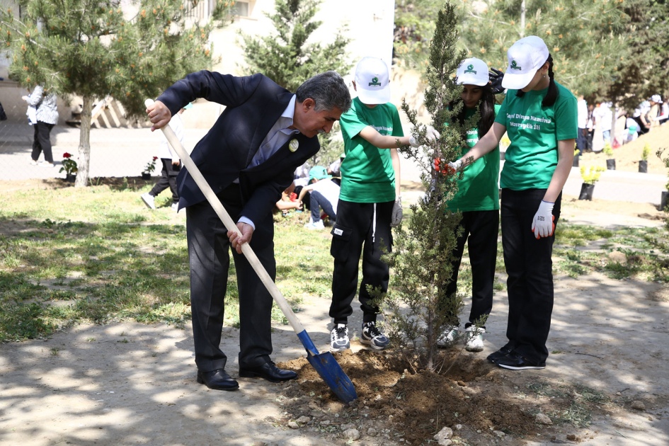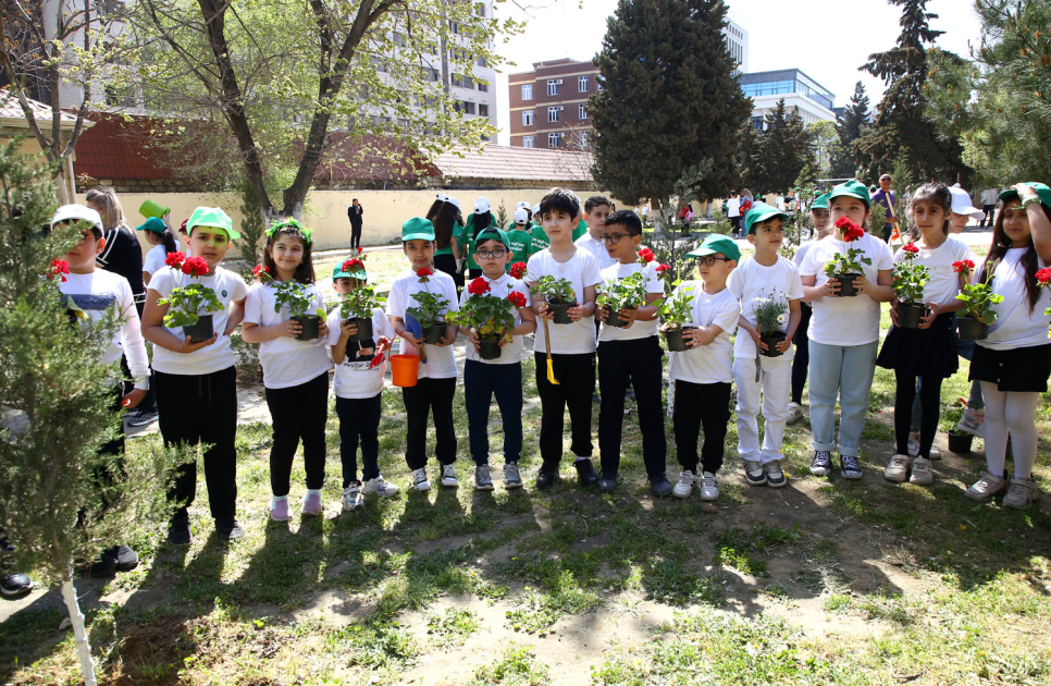 Daha sonra məktəbin həyətyanı sahəsində müxtəlif ağac tingləri və gül kolları əkilib.