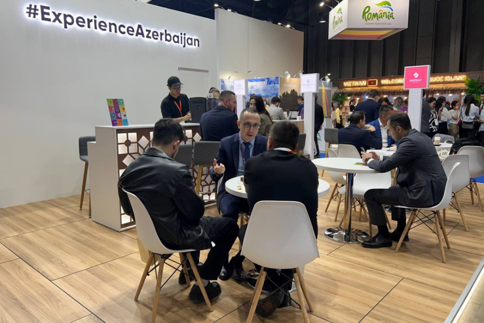 Tehsil.biz xəbər verir ki, 92 kvadrat metr sahəni əhatə edən milli stenddə ölkəmizi “Azərbaycan Hava Yolları” QSC, “Şahdağ” Turizm Mərkəzi, hotellər və turizm agentlikləri daxil olmaqla, ümumilikdə 9 sənaye tərəfdaşı təmsil edir. Sərgidə ölkə turizminin təbliği və təşviqi ilə bağlı B2B (Biznesdən biznesə) görüşlər keçirilir, əməkdaşlıq imkanları müzakirə olunur.