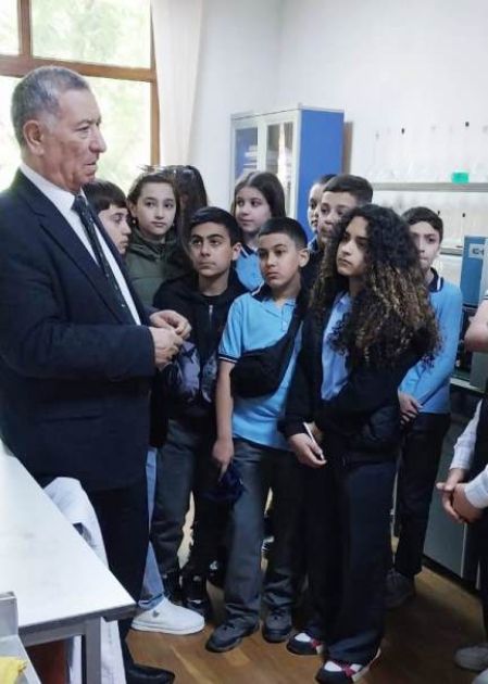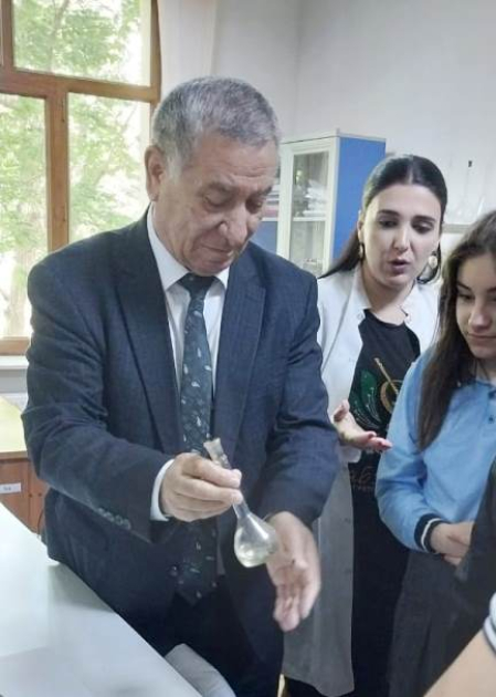 Sonra Analitik kimya laboratoriyasının rəhbəri, dosent Aydın Paşacanov şagirdlərə laboratoriyada aparılan elmi işlərin perspektivliyi haqqında danışıb. Laboratoriyanın işçiləri tərəfindən şagirdlər üçün maraqlı olan bəzi reaksiyalar əyani şəkildə göstərilib.