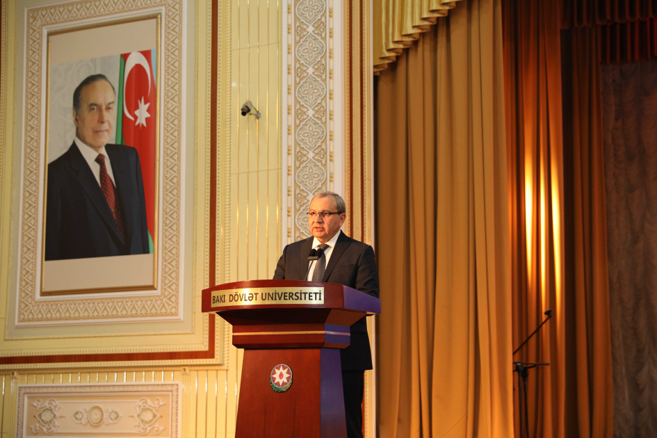 Rektor Ulu Öndərin “Azərbaycan xalqının milli sərvəti, milli iftixarı” adlandırdığı BDU-nun dünyaşöhrətli məzunu olduğunu, qürurla “Mən fəxr edirəm ki, Bakı Dövlət Universitetinin məzunuyam” kəlamı ilə adını, şöhrətini zirvələrə ucaltdığını diqqətə çatdırıb, onun universitetə hər zaman qayğı ilə yanaşdığını qeyd edib.