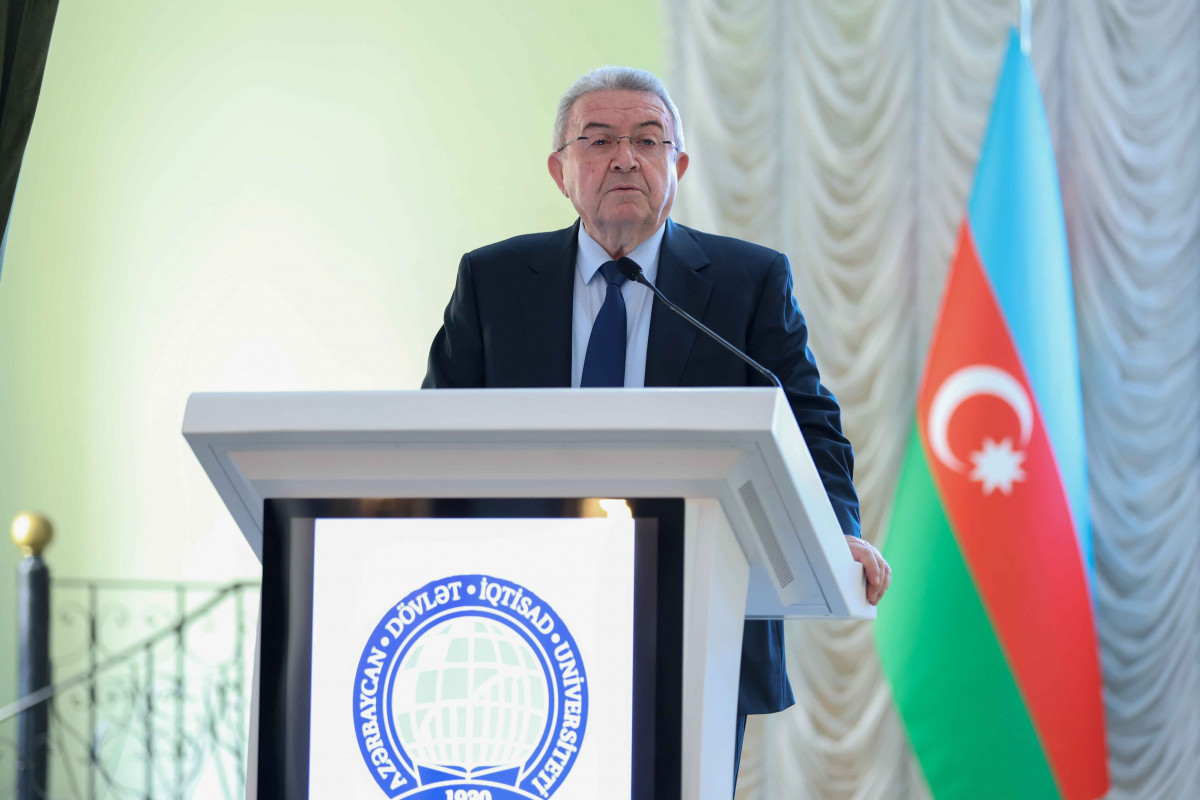 UNEC-in rektoru professor Ədalət Muradov qonaqları salamlayaraq, şərəfli ömür yolunu ölkəmizin tərəqqisinə və millətimizin parlaq gələcəyinə həsr etmiş Ulu Öndər Heydər Əliyevin Azərbaycan xalqı və dövləti qarşısındakı misilsiz xidmətlərindən söz açıb. Müstəqilliyin ilk illərində Azərbaycanı ağır iqtisadi durumdan çıxaran Ulu Öndər Heydər Əliyevin iqtisadi siyasətinin fəlsəfəsi haqqında fikirlərini iştirakçıların diqqətinə çatdırıb.