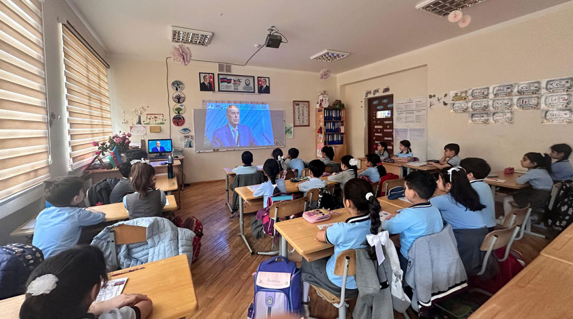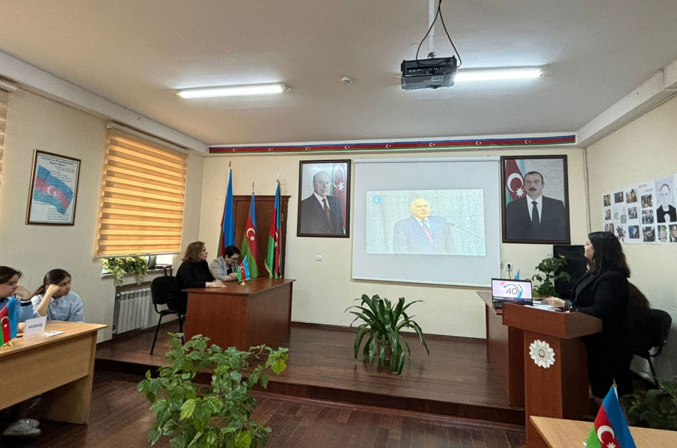 Ulu Öndər Heydər Əliyevin Azərbaycan xalqının tarix boyu yetişdirdiyi nadir və bənzərsiz şəxsiyyət kimi milyonlarla insanın qəlbində əbədi yaşadığı vurğulanıb. Ümummilli Liderin ideyalarının Azərbaycan Prezidenti İlham Əliyev tərəfindən qətiyyətlə həyata keçirildiyi bildirilib. Heydər Əliyevin müəyyənləşdirdiyi siyasi xətti özündən sonra uğurla davam etdirən Prezident, Müzəffər Ali Baş Komandan İlham Əliyevin yürütdüyü uzaqgörən siyasət nəticəsində ərazi bütövlüyümüzün və suverenliyimizin təmin olunduğu şagirdlərin diqqətinə çatdırılıb.