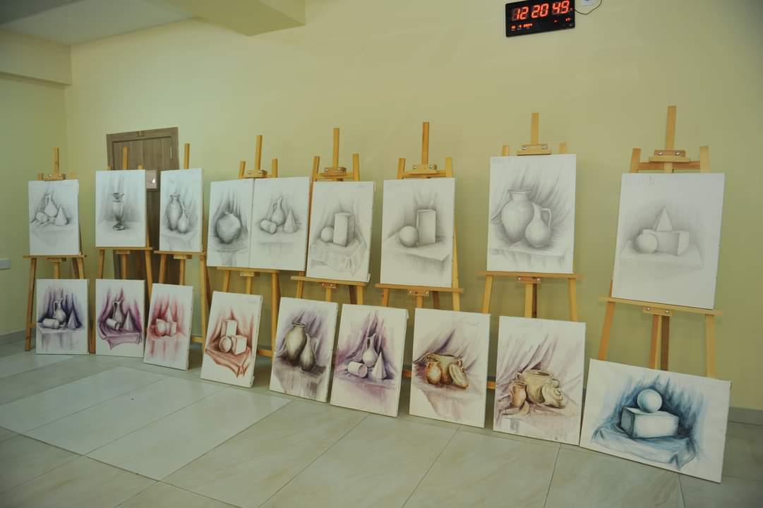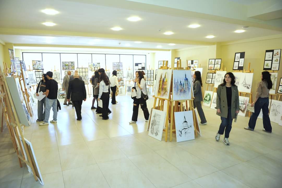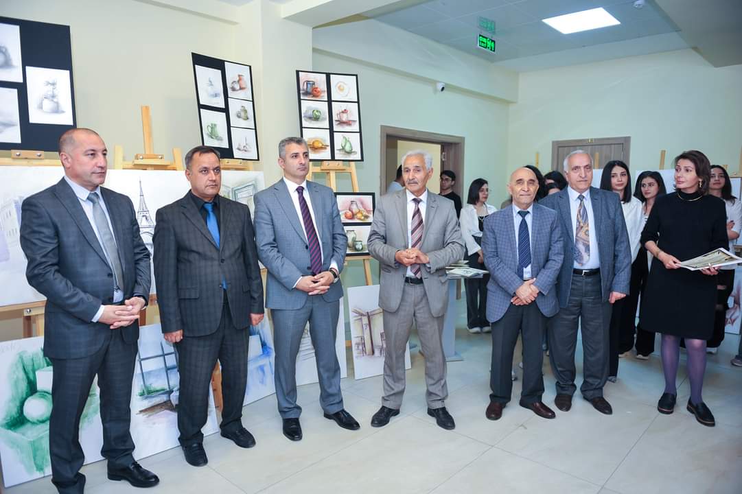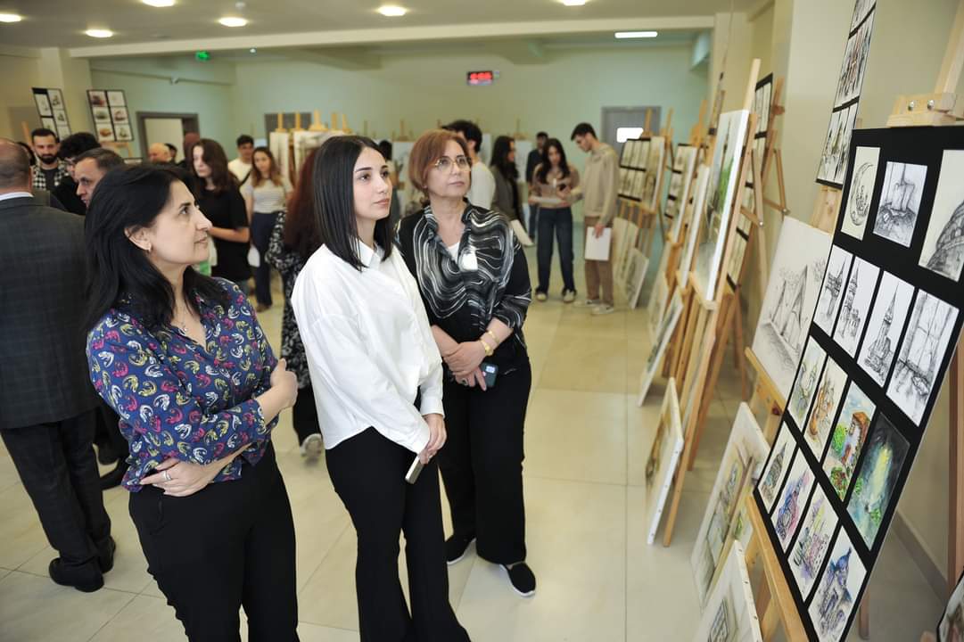 Sonra sərgiyə baxış keçirilib. 17 may tarixinə qədər davam edəcək sərgidə universitetin Dizayn kafedrasının baş müəllimi Lalə Sadıxovanın rəhbərliyi ilə rəsm və rəngkarlıq fənləri üzrə tələbələrin aktual işləri, o cümlədən interyer və eksteryer təsvirləri nümayiş etdirilir.