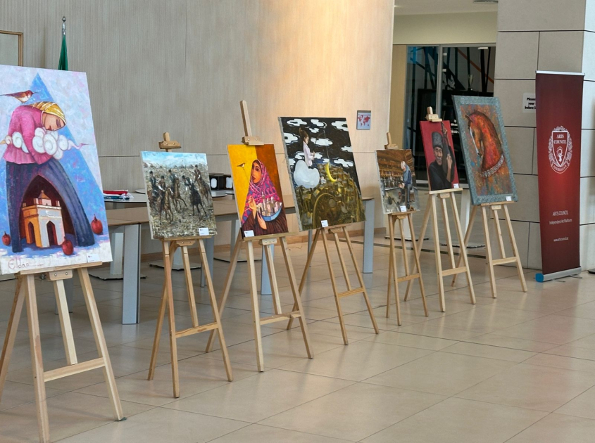 Ekspozisiyaya milli mədəni irsin qədimliyini və müxtəlifliyini əks etdirən müxtəlif rəssamların 20-dən çox əsəri daxil edilib. Müəlliflər Eldar Babazadə, Röya Həsənova, Məryəm Kiblayeva, Leyla Orucova, Nailə Aslanova, Sevda Rüstəmova, Nigar Əliyeva, Elşən Rzazadə, Afaq Əkbər, Nailə Məhərrəmova, Vüsalə Şərifova, Nigar Familsoy, Leyla Muradova ölkənin aparıcı universitetlərindən birinin divarları arasında unikal yaradıcılıq mühiti yarada biliblər.
