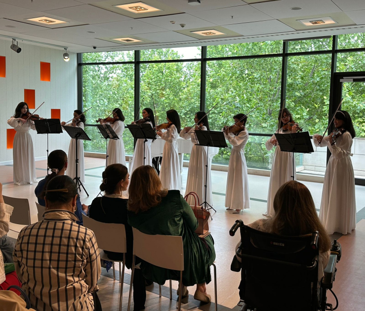 Tədbirin davamında ADA Universitetinin tələbələri və Xalq artisti Zəhra Quliyevanın rəhbərliyi ilə “Detaşe-Sabah” skripkaçılar ansamblının konserti baş tutub.