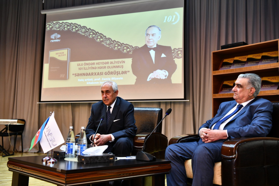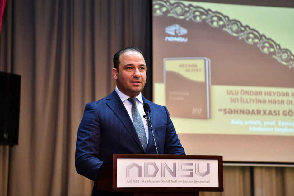Mayın 30-da Azərbaycan Dövlət Neft və Sənaye Universitetində (ADNSU) Ümummilli Lider Heydər Əliyevin anadan olmasının 101 illiyinə həsr edilmiş “Səhnəarxası görüşlər” kitabının təqdimat mərasimi keçirilib.
