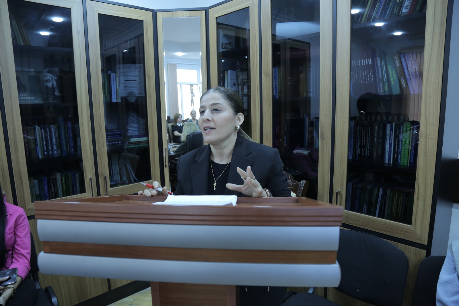 Elmi sessiya Folklor İnstitutunda təcrübə keçən Xəzər Universitetinin IV kurs tələbələri – Nəzrin Şahsuvarlı və Fidan Bağırlının şairin yaradıcılığı barədə düşüncələri və səsləndirdikləri poeziya nümunələri ilə davam edib.